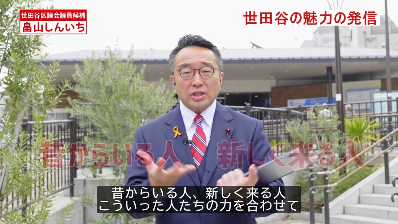 吉祥寺生まれ・シアトル育ちの畠山晋一です。世田谷区の最北東部に住まい、27歳から世田谷区議会議員をさせて頂いております。日本の安寧がどのようにもたらされてきたのか、先人の想いを常々聴かせて頂いております。政治に携わる者として、少子化の影響により大きな逆ピラミッドとなることが現実的にどのような影響を及ぼすのか。また、東日本大震災やウィルス感染症など、厳しい状況も乗り越えてきた日本人が次の世代も元氣に生活できる、日本、東京、世田谷について考えます。